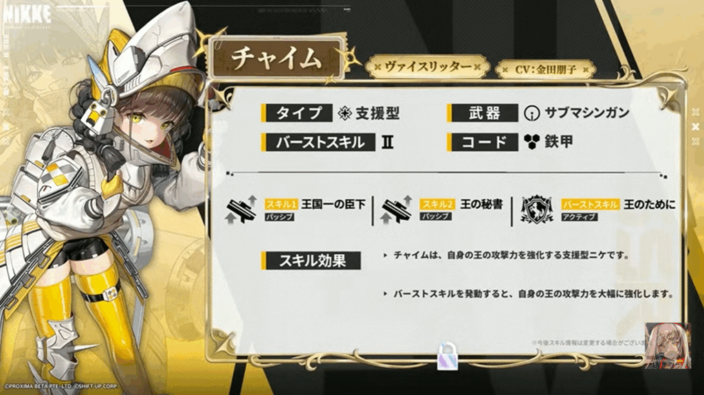 チャイムはクラウンを大幅に強化する能力で、バーストⅡ再突入キャラとのことです!