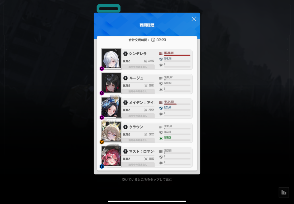 凸数はシンデレラ、ルージュ、アイスメイデン、クラウンがコア2でメイドマストが3凸(コア0)という状況でした。