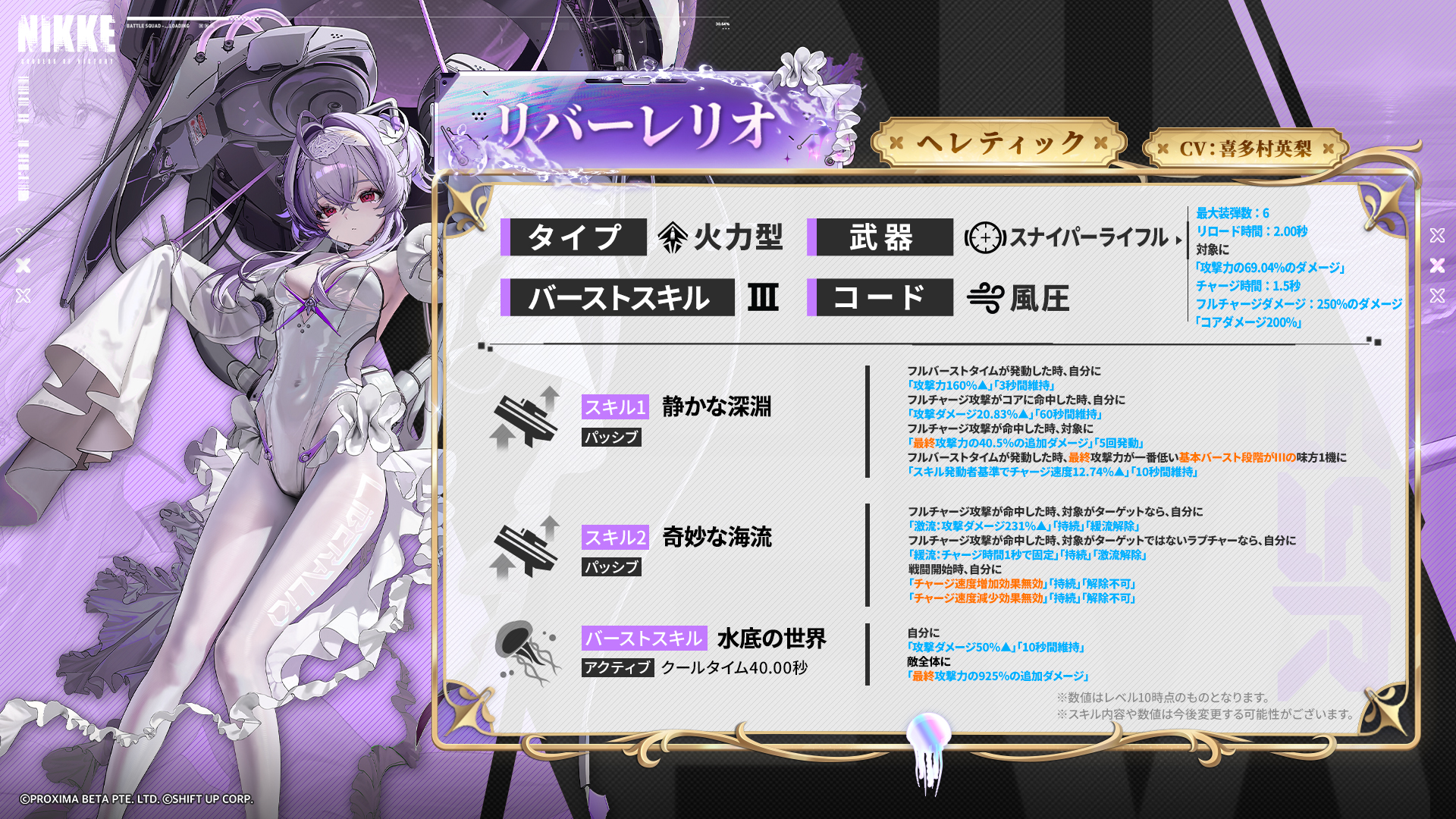 それでは勝利の女神:NIKKEのキャラクター、リバーレリオについての解説を始めていきたいと思います!