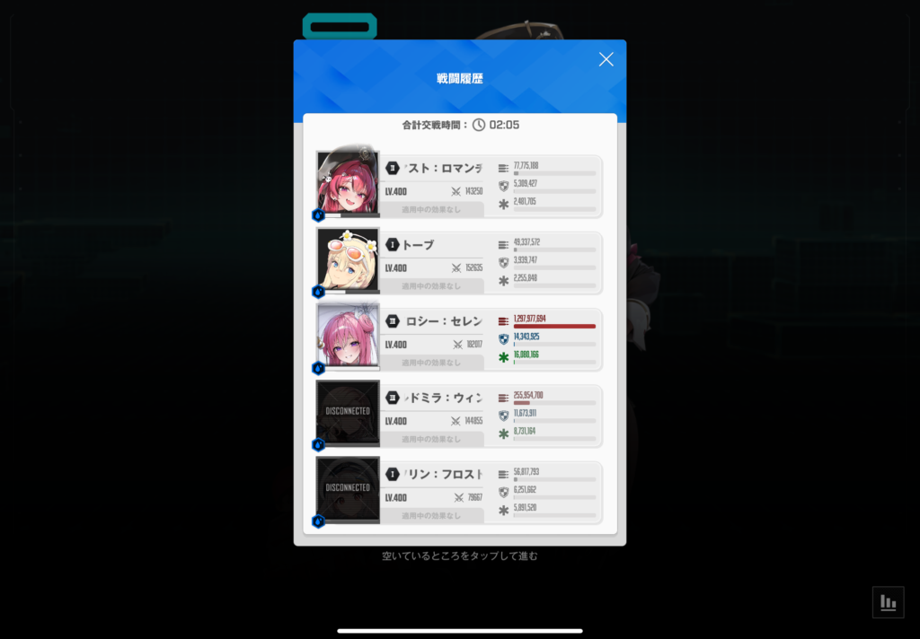 一応複数編成で挑めるので、時間内にクリアする必要はないのですが、編成をまたぐとボスのHPが回復するのでそれもやっかいですね。