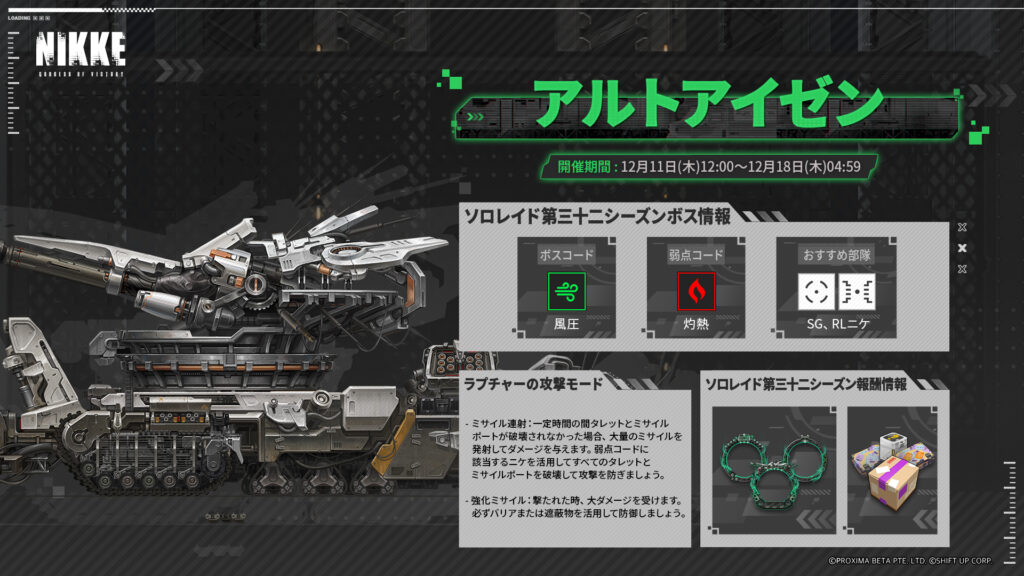 特殊個体アルトアイゼンには数多の指揮官が苦戦したと思いますが、今回は風圧属性となりソロレイドのボスとして登場しました。