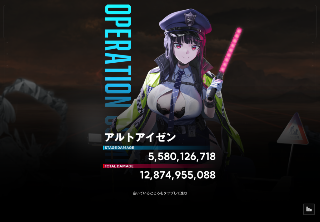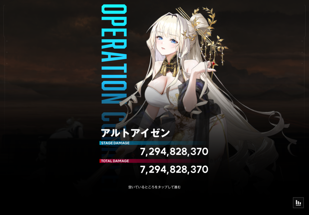 次はショットガン編成の紹介です。今回使用した編成の最終スコアと個人ダメージがこちら!