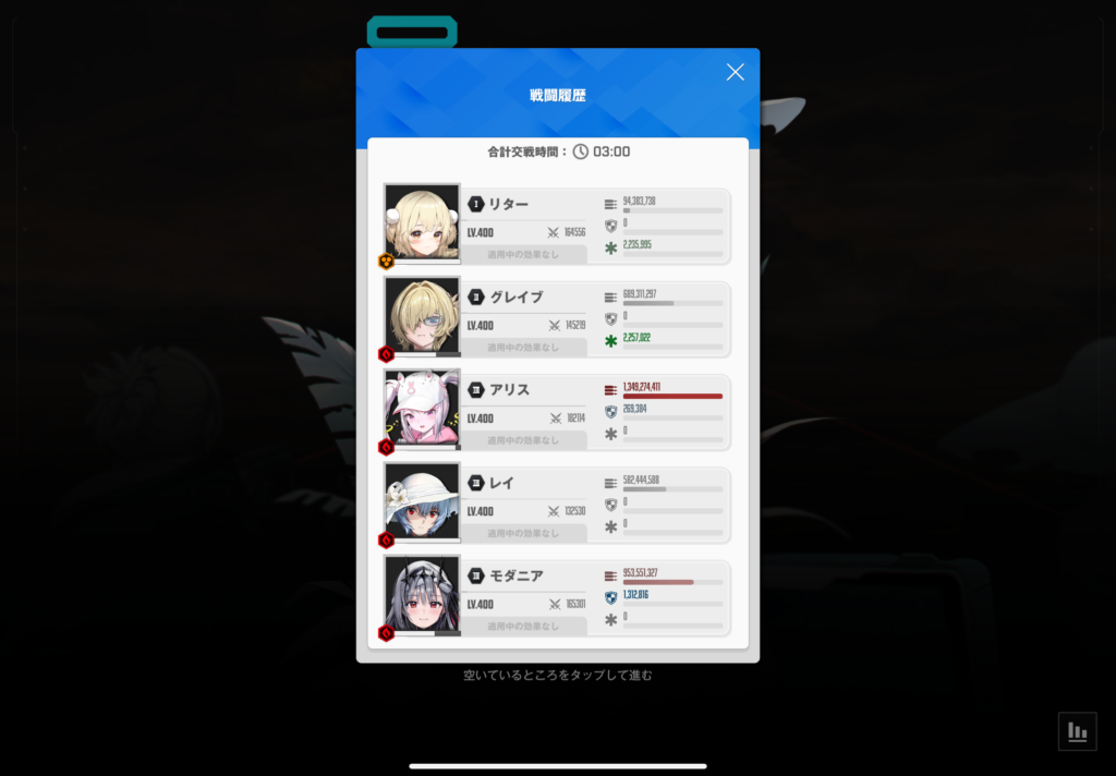 この編成はとにかくラピが一番重要ですね。ダメージの半分以上をラピが稼いでくれています。